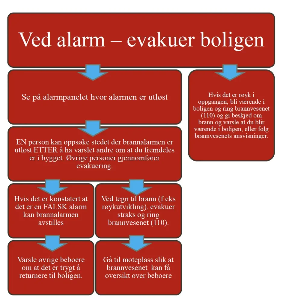 Våre eiendommer er utstyrt med brannvarslingsanlegg med detektorer i hver leilighet. Sett deg inn i hvordan brannvarslingsanlegget fungerer.